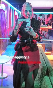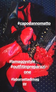 Ed allora creo lo stile rock da forti vibrazioni positive che mi contraddistingue sfoggiando un tubino rosso che sprizza sensualità da tutti i pori, un tronchetto rosso con un fiocco e in vita un fiocco nero e rosso un fiocco che ricorda minnie .